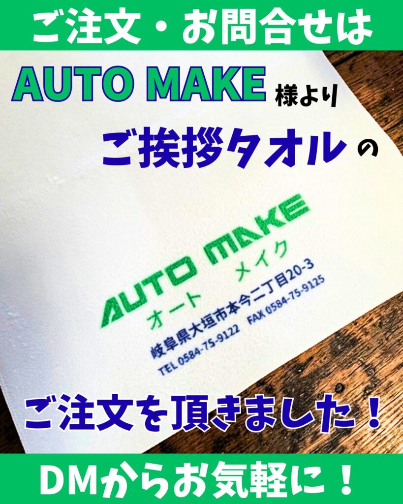 大垣市にて自動車販売・車検整備などをされておりますAUTO MAKE様よりご挨拶タオルのご注文を頂きました!